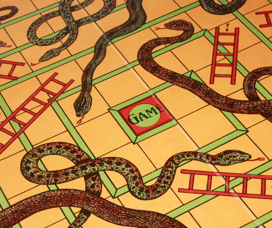 When you look at a snakes and ladders board, you’ll see you go up the ladders and down the snakes